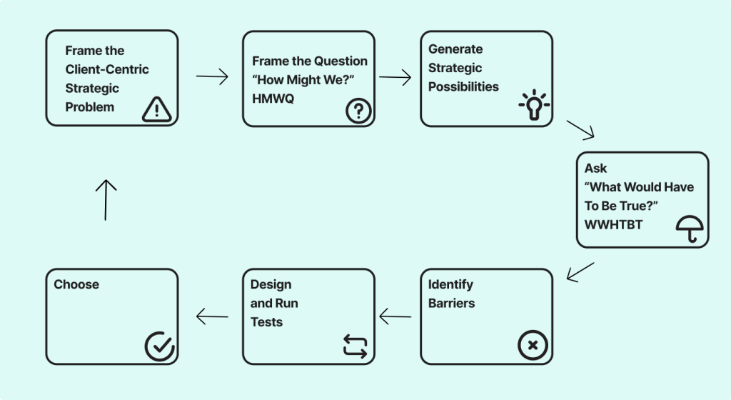 Martin advises once we’ve made our set of strategic choices, we’ll want to pin their associated “What Would Have To Be True?” conditions over our desks, and keep an eye on them every day.